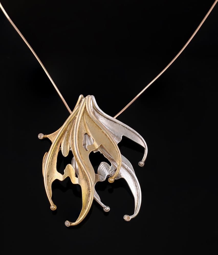 When I had an enameling class, I create a full SeaDragon necklace in fine silver so I could add enamel colors to it. During a class exploring Gold and Platinum, I plated one silver piece in 24K gold, and then had to practice with a laser welder to attach it to another silver piece.